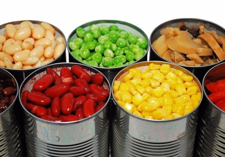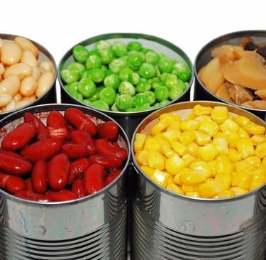 Disponemos de conservas de piña, durazno y frijoles en lata.
